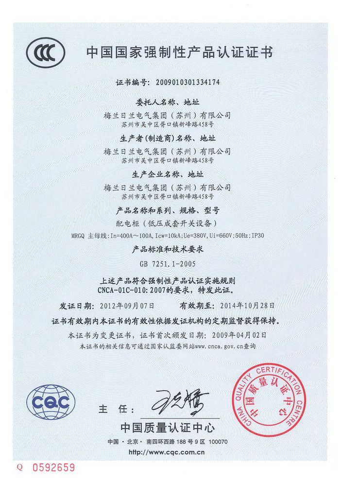(成套)MRGQ主母線資質(zhì)證書(shū)