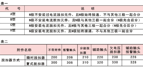 訂貨時(shí)必須寫(xiě)明:產(chǎn)品名稱(chēng)、型號(hào)、規(guī)格、極數(shù)、脫扣方式及附件名稱(chēng)、保護(hù)特性、額定電流、額定剩余動(dòng)作電流,訂貨數(shù)量。