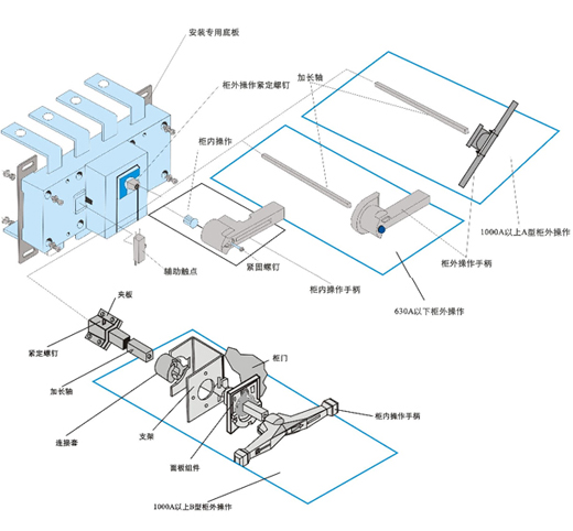 125A-630A適用于電路的接通與分?jǐn)嚯姎飧綦x,1000A以上只適用于電氣隔離。