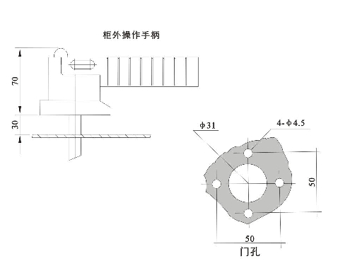柜外操作:手柄安裝在配電柜柜門(mén)外。