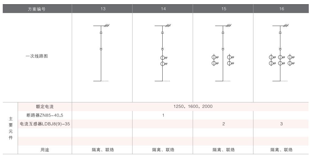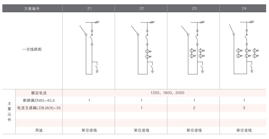 開關(guān)柜的一次接線方案有27個常用典型方案,能滿足用戶電纜進出線、架空進出線,聯(lián)絡(luò)級測量、保護等的需要,若有不同與現(xiàn)有方案的其他方案的需要,請與廠方協(xié)商。
