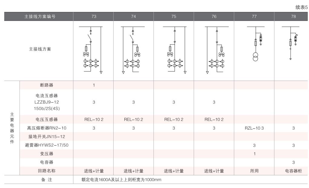 ◆開關(guān)柜的電器元件的型號、規(guī)格、數(shù)量;