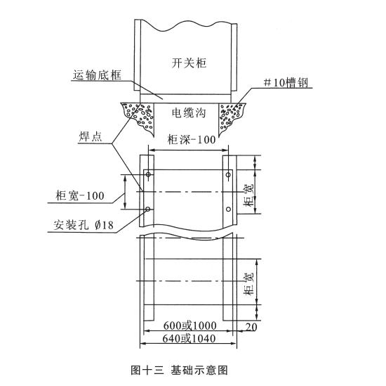 基礎(chǔ)處理:電纜溝的寬度由用戶自己選定,用10#槽鋼按圖十一方式預(yù)埋并與地面平。如果運(yùn)輸?shù)坠衽c基礎(chǔ)槽鋼用螺栓聯(lián)接,則基