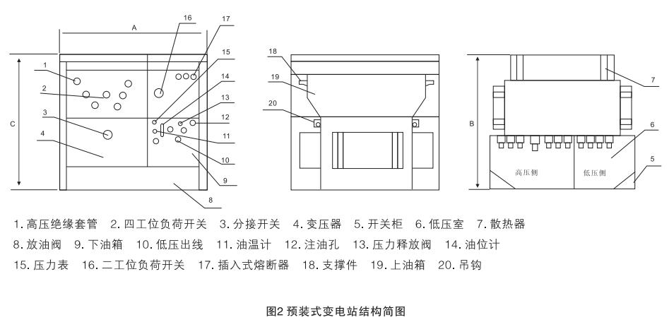 YB27系列預(yù)裝式變電站,適用于10kV環(huán)網(wǎng)供電、雙電源供電或終端供電系統(tǒng)中,作為變電、配電、計(jì)量、補(bǔ)償、控制和保護(hù)裝置。預(yù)裝式變電站內(nèi)除裝有變壓器外,高壓側(cè)還裝有四工位負(fù)荷開(kāi)關(guān)、二工位負(fù)荷開(kāi)關(guān)、后備保護(hù)熔斷器及插入式熔斷器;低壓側(cè)按用戶(hù)要求可裝控制電器、配電電器、補(bǔ)償裝置及計(jì)量表計(jì)等,以變壓器油作為絕緣和來(lái)弧介質(zhì)。
